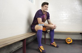 在莫利纽克斯球场的夜空下,一幅覆盖整片南看台的巨幅TIFO缓缓展开,若塔身穿狼队标志性的橙色球衣张开...